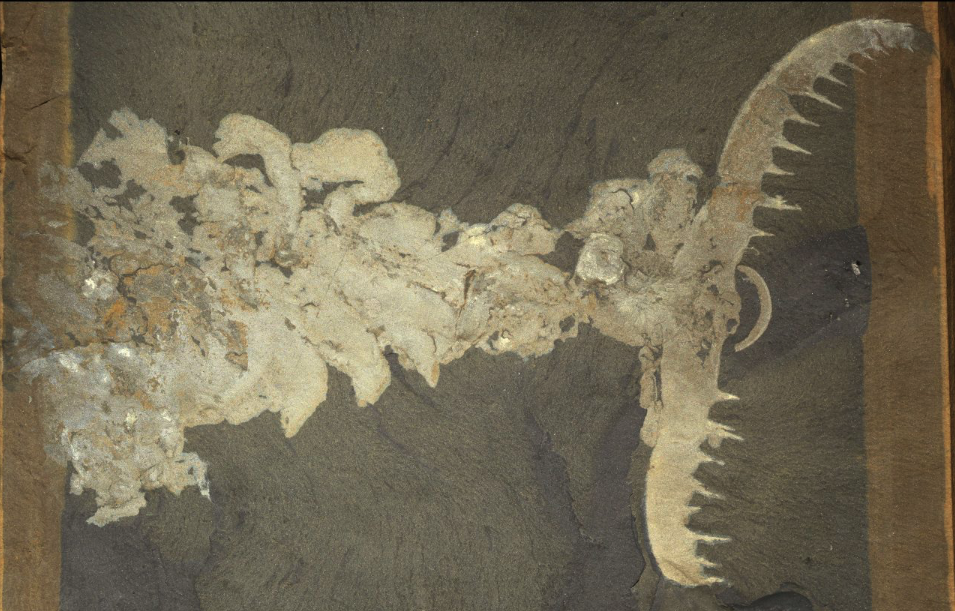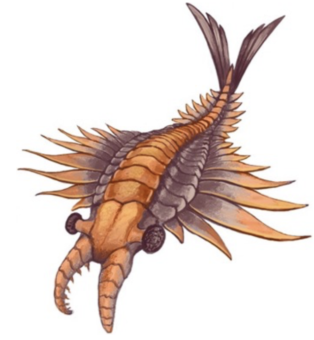 Anomalocaris was a Cambrian explosion arthropod thought to be one of the earliest animals to hunt and eat other animals. It was possibly around 0.82 to 3.2 feet long, which was extremely large for animals at the time. Most believe that the two sharp, hooked appendages coming out of its head were used to capture prey. Because Anomalocaris fossils were discovered as separate pieces of its body, its presumed appearance has changed drastically over the years. Each part was described separately as a shrimp, part of a jellyfish, a sea cucumber, and more before it was suggested by Derek Briggs and Harry Whittington that they all made up one animal. The name Anomalocaris means strange (anomalo) shrimp (caris).